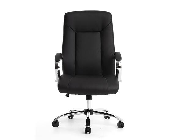 Assise et dossier en simili cuir : PU (à l'avant) et PVC (l'arrière). Assise en mousse densité 35 kg/m3 et 22 kg/m3 pour le dossier. Réglage en hauteur de l'assise par piston à gaz. Dossier inclinable et blocable. Accoudoirs fixes en métal chromé recouverts de manchettes en simili cuir. Base en acier chromé. 5 roues en nylon Ø 6 cm. Recommandé pour une utilisation journalière de 8h. Dimensions totales : largeur 630 mm x profondeur 730 mm x hauteur 1160 à 1210 mm. Dimensions utiles : profondeur siège 520 mm x largeur 540 mm x hauteur dossier 710 mm. Poids maximum : 110 kg. Poids du siège : 16 kg.