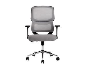Fauteuil ergonomique avec un dossier en 2 parties, mobile, pour un confort unique. Assise en mousse et dossier en maille. Réglage en hauteur de l'assise par piston à gaz. Dossier inclinable et blocable. Accoudoirs 3D en nylon réglables en hauteur, profondeur et largeur. Soutien lombaire indépendant et ajustable. Base en métal chromé. 5 roues en nylon Ø 6 cm. Recommandé pour une utilisation journalière de 8h. Dimensions totales : largeur 700 mm x profondeur 650 mm x hauteur 1010 à 1090 mm. Dimensions utiles : profondeur siège 530 mm x hauteur dossier 630 mm. Poids maximum : 110 kg. Poids du siège : 12 kg.