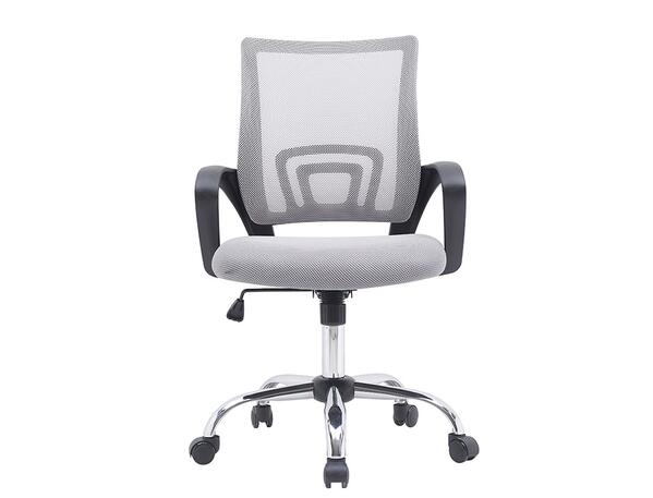 Assise en mousse et dossier en maille. Réglage en hauteur de l'assise par piston à gaz. Dossier inclinable et blocable. Accoudoirs fixes en polypropylène. Base en métal chromé. 5 roues en nylon Ø 5 cm. Recommandé pour une utilisation journalière de 5h. Dimensions totales : largeur 560 mm x profondeur 570 mm x hauteur 900 à 1000 mm. Dimensions utiles : profondeur siège 500 mm x hauteur dossier 490 mm. Poids maximum : 90 kg. Poids du siège : 8,5 kg.