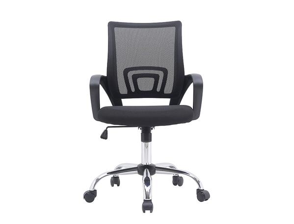 Assise en mousse et dossier en maille. Réglage en hauteur de l'assise par piston à gaz. Dossier inclinable et blocable. Accoudoirs fixes en polypropylène. Base en métal chromé. 5 roues en nylon Ø 5 cm. Recommandé pour une utilisation journalière de 5h. Dimensions totales : largeur 560 mm x profondeur 570 mm x hauteur 900 à 1000 mm. Dimensions utiles : profondeur siège 500 mm x hauteur dossier 490 mm. Poids maximum : 90 kg. Poids du siège : 8,5 kg.