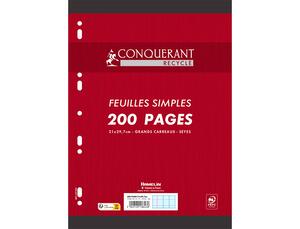 Feuilles mobiles perforées 90 g/m2. 200 pages recyclées. Sous film. Dimensions : 210 x 297 mm. Produit certifié PEFC.