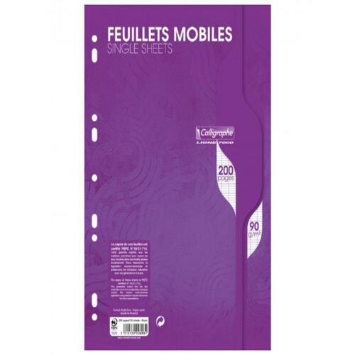 Feuillets mobiles sous film 7000 A4 200 pages perforées grands carreaux 90 g. Perforation universelle pour intégrer facilement un classeur. Papier Vélin Surfin 90 g. Certifié PEFC, pour la gestion durable des forêts. Fabriqué en France.