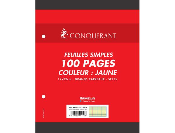 FEUILLES SIMPLES CONQUERANT 7 PERFOREES 170x220 FILM 100P 80G SEYES JAUNE