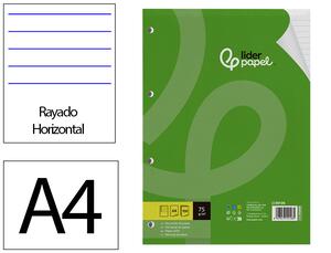 Feuilles perforées lignées A4 de 75 g/m2. Avec marge. 4 trous. 100 feuilles. Dimensions : 210 x 297 mm
