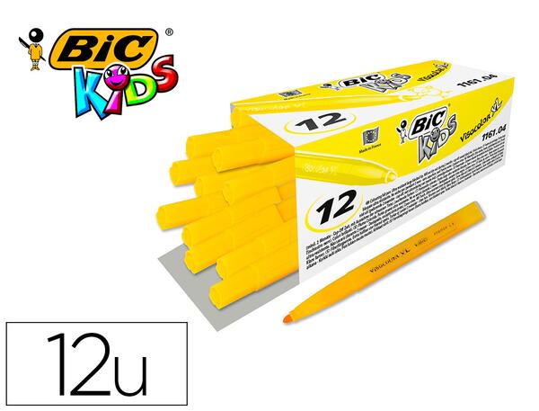 Le feutre BIC Visacolor XL Ecolutions, de couleur jaune, est un outil de coloriage idéal pour les enfants à partir de trois ans. Conçu avec un corps rond pour une prise en main facile et une pointe large et résistante de 4,5 mm, ce feutre est parfait pour couvrir de grandes surfaces sans effort. Sa formule à base d'eau garantit que l'encre ne sèche pas même après deux mois sans capuchon et qu'elle est lavable sur la plupart des tissus, ce qui permet aux enfants de s'amuser sans stress.