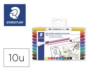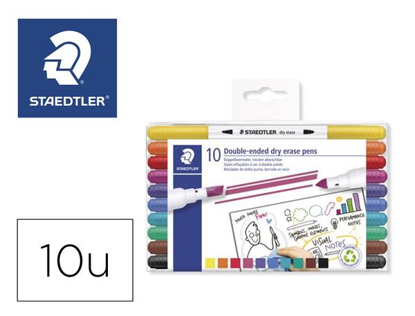 Ce set de 10 feutres Staedtler 3010 TB10 offre une solution pratique et polyvalente pour le coloriage et le marquage sur tableaux blancs et ardoises blanches. Chaque feutre est équipé d'une double pointe, ogive et biseautée, permettant de réaliser aussi bien des tracés précis que des aplats larges. Grâce à son encre effaçable à sec et inodore, il assure une écriture nette, facilement corrigible sans laisser de traces.