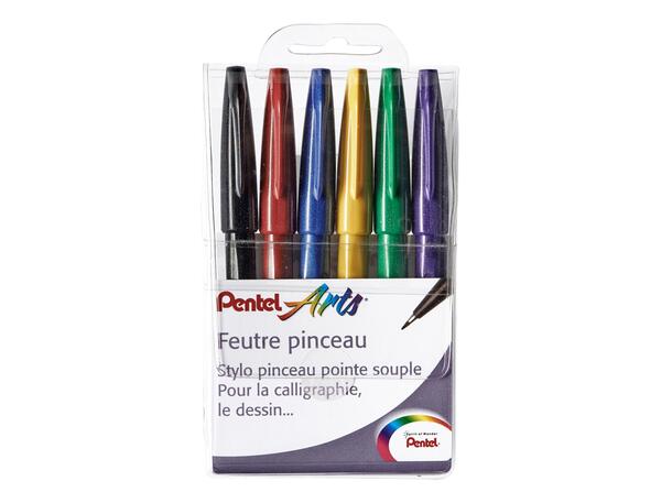 Pointe souple résistante et de qualité avec bague métal. Idéal pour croquis, dessins, esquisses, illustrations, mangas, calligraphies. Encre aquarellable. Largeur de pointe : 2,07 mm - Largeur d'écriture : 0,3 à 0,7 mm - Longueur d'écriture : 750 m. La pochette de 6 couleurs assorties (noir, rouge, bleu foncé, jaune, vert, violet). Produit recyclé à 77% (hors consommable).