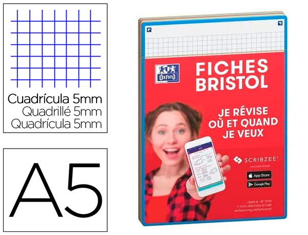 Fiches Bristol avec cadre de couleur qui permet de les classer. Impression 5 x 5 mm. Papier 250 g. Grâce à l'application SCRIBZEE, possibilité de relecture partout sur les portables. Paquet de 32 fiches. Produit certifié PEFC.