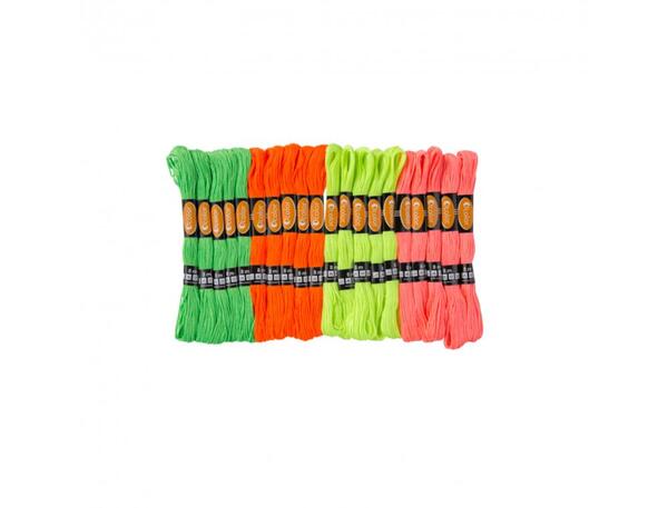 Découvrez notre ensemble de fils en coton aux couleurs vibrantes et fluorescentes, parfait pour donner vie à vos projets créatifs. Chaque lot contient 20 échevettes, chacune mesurant 8 mètres de long, offrant ainsi une palette éclatante et suffisante pour toute une gamme de travaux d'aiguille.