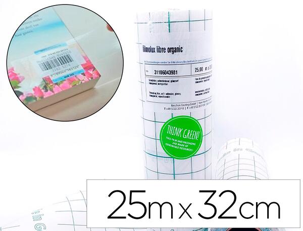 Film Filmolux® libre organic fabriqué à partir de canne à sucre. Pour la protection des surfaces lisses, par exemple les livres de poche, les bandes dessinées, les couvertures en papier, brochures, dépliants, etc. Film à base PE sourcé Bio, brillant, épaisseur 90 'm, avec protection UV. Pouvoir adhésif différé. Colle dispersion acrylate à base aqueuse, exempte de solvants, résistante au vieillissement et durablement élastique, pH-neutre. Papier de protection siliconé avec quadrillage pour faciliter la découpe. Fabriqué conformément à la norme REACH, sans APEO, ni BPA. Sans PVC. Nettoyage facile et désinfection possible. Laize 32 cm x Longueur 25 m.