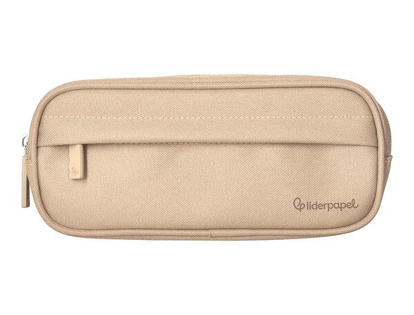 Fourre-tout 1 compartiment avec coins arrondis et 1 poche latéale. En polyester résistant. Dimensions : 21 x 9 x 6 cm. Coloris beige.