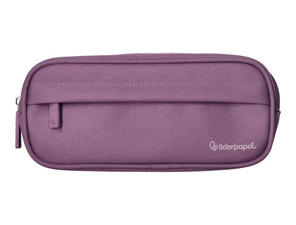 Fourre-tout 1 compartiment avec coins arrondis et 1 poche latéarle. En polyester résistant. Dimensions : 21 x 9 x 6 cm. Coloris mauve poudré.