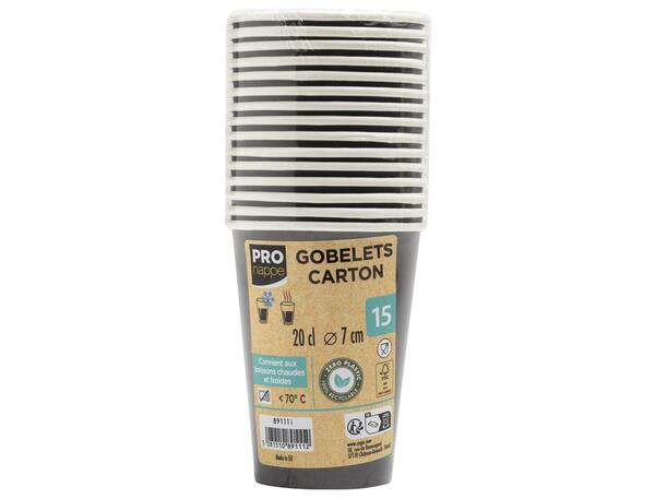 15 Gobelets en carton, 20 cl. Ces gobelets sont fabriqués à partir de carton haute résistance sans additif plastique, imperméabilisés grâce à une technologie papier innovante, conformément aux règlementations Européennes sur la vaisselle jetable. Ils sont donc entièrement recyclables, comme du papier, mais aussi certifiés FSC®- C002321, issus d'une gestion responsable des forêts. Ces gobelets carton sont également fabriqués en Europe. Rigides, ces gobelets sont résistants aux boissons froides comme chaudes. Ils sont conformes à la règlementation sur le contact alimentaire. Ils ne conviennent pas à une utilisation au micro-ondes. Ce produit avec ses couleurs vives et tendances sublimera votre décoration de table en toutes occasions : pique-niques, fêtes d'anni versaires, barbecues, mariages...Les couleurs sont assorties aux nappes papier et non-tissées ainsi qu'aux serviettes dans nos gammes. Le paquet comprend 15 gobelets de 20 cl en carton, sous film.