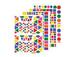 Gommettes échenillées. 3 tailles différentes et 7 couleurs. Pochette de 60 planches A5 - 6900 gommettes - Couleurs assorties : jaune, rose, vert, bleu, orange, rouge et violet Adhésif enlevable