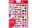 7 couleurs assorties : jaune, bleu, rose, vert, rouge, orange, fuschia et violet. Pochette 6 feuilles - Format 16 x 21 cm - 3 tailles assorties. Pochette de 624 gommettes