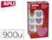 Rouleau de gommettes en forme de c'ur de dimensions 20 x 18 mm de diverses couleurs : vert clair, bleu clair et rose, avec un adhésif permanent. Chaque rouleau contient 30 feuilles prédécoupées pour une séparation facile, un total de 900 gommettes par rouleau. Le format parfait à utiliser à l'école, à la garderie, pour les ateliers ou tout autre environnement où évoluent les enfants. Jouer et créer avec des gommettes est une activité basique qui permet de développer la psychomotricité fine et d'exercer, en même temps, diverses capacités et habiletés telles que la connaissance des couleurs, des formes géométriques et des dimensions, le développement de la lo'''''''''''''''''''''''''''''''''''''''''''''''''''''''' pace, entre autres. De plus, les gommettes APLI respectent les normes les plus strictes de qualité et de sécurité. Fabriquées dans le respect des normes EN-71 et de la chaîne de traçabilité FSC : - Adhésif à base d'eau - Sans solvants - Papiers ECF (leemental