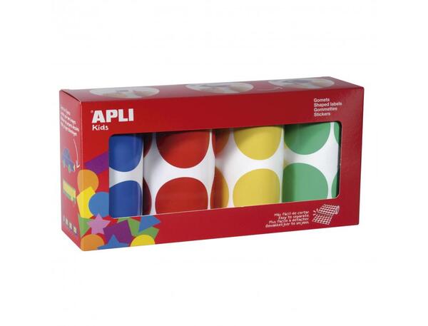Ø 45 mm - Assortiment de 4 rouleaux : jaune, bleu, rouge et vert - 1416 gommettes Adhésif permanent