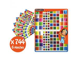 Pochettes de 6 planches A5 - 744 gommettes - 8 coloris assortis - 3 tailles assorties : 9, 14 et 18 mm