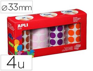 Boîte de rouleaux de gommettes rondes diamètre Ø 33 mm de diverses couleurs : marron, rose, lilas et orange avec un adhésif permanent. Chaque boîte contient 4 rouleaux (1 par couleur). Chaque rouleau contient 59 feuilles prédécoupées pour une séparation facile, un total de 2 832 gommettes par boîte. Le format et la taille parfaite à utiliser, surtout dans les garderies, pour que les plus petits puissent commencer à développer la psychomotricité fine et exercer, en même temps, diverses capacités et habiletés telles que la connaissance des couleurs, des formes géométriques et des dimensions, le développement de la logique et la créativité, le travail en équipe ou encore la maîtrise de l'espace, entre autres. De plus, les gommettes APLI respectent les normes les plus strictes de qualité et de sécurité. Fabriquées dans le respect des normes EN-71 et de la chaîne de traçabilité FSC : - Adhésif à base d'eau - Sans solvants - Papiers ECF (leemental Chlorine Free) - Matériaux 100% recyclables