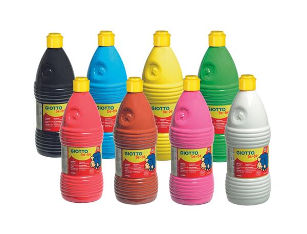 Couleurs vives et brillantes assorties. Gouache ultra-lavable, facile à laver sur la peau et les surfaces non poreuses avec de l'eau et du savon. Testée dermatologiquement. Assortiment de 8 flacons de 1 litre - Blanc, jaune, rouge, magenta, vert, bleu cyan, marron et noir