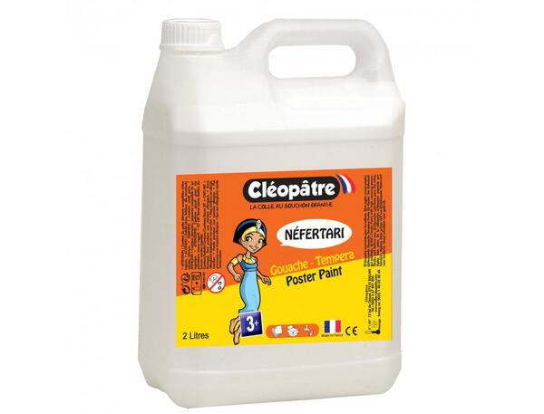 Découvrez la gouache liquide Cléopâtre Nefertari en coloris blanc, une peinture idéale pour libérer la créativité dès le plus jeune âge. Sa formule lavable à l'eau savonneuse et enrichie d'un agent d'amertume assure une utilisation sécurisée pour les enfants. Présentée dans un flacon généreux de 2 litres, elle est parfaite pour les projets artistiques et éducatifs.