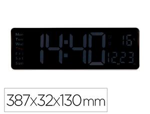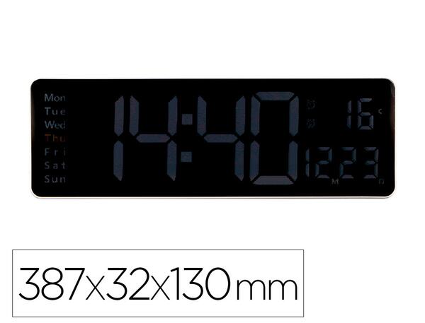 Ce grand modèle d'horloge est idéal pour être accroché au mur de votre bureau, salle de sport, domicile ou tout autre espace partagé. Son large écran LED garantit une lecture claire de l'heure, de la température et du jour de la semaine depuis n'importe quel angle. Équipée d'une télécommande, elle permet d'ajuster facilement l'heure, la température (°C/°F) et les fonctions de l'horloge depuis votre siège. Fonctionne avec câble USB. Format 12 / 24 heures avec indicateur AM. Affichage de la température. 2 alarmes. Télécommande incluse. Réglage automatique de la luminosité (capteur photosensible, 10 niveaux). Dimensions : 387 × 32 × 130 mm