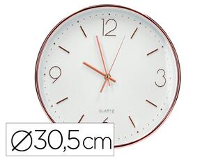 Horloge murale, design actuel et attractif. Cadre en plastique de couleur rose métallisée. Avec de grands chiffres de couleur pour une lecture facile. Mécanisme silencieux. Fonctionne avec 1 pile AA (non incluse). Diamètre: 305 mm.