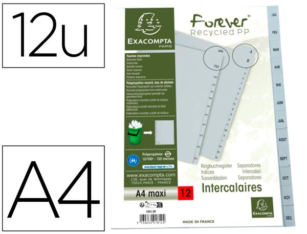 Optimisez l'organisation de vos documents avec les intercalaires imprimés mensuels Exacompta en polypropylène recyclé. Conçus pour durer, ces intercalaires offrent une solution efficace pour une gestion mensuelle simplifiée de vos fichiers. Leur design gris sobre s'intègre parfaitement dans tout environnement professionnel ou personnel.