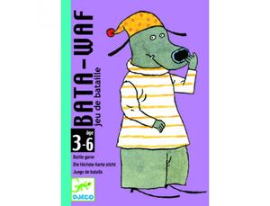 "But du jeu : jeu de bataille et de mesure conçu pour les plus jeunes ! Celui qui a mis la carte avec le chien le plus grand remporte le pli. S'il y a 2 chiens de même taille on fait """Bata-Waf""" : on cache 2 cartes puis on en retourne 2 autres pour déterminer le gagnant. Intérêt pédagogique : approche des dimensions. Contenu : 36 cartes et la règle 2 à 4 joueurs - Durée : 10 min"