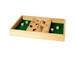But du jeu : rabattre tous les chiffres, ou le plus grand nombre de chiffres. Une manière très ludique de faire du calcul mental! Contenu : 1 plateau de jeu bois avec 1 barrette centrale numérotée des 2 côtés de 1 à 9 et 2 rangées de 9 clapets, 4 dés à constellation de 1 à 6, règle et variantes
