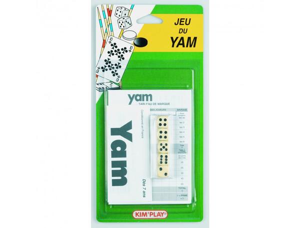 Jeu de Yam's fourni avec dés, tableau de marque et règles du jeu. Un jeu de hasard et de réflexion ! Contenu : 1 carnet (15 x 11 cm), 5 dés et la règle de jeu 2 à 4 joueurs