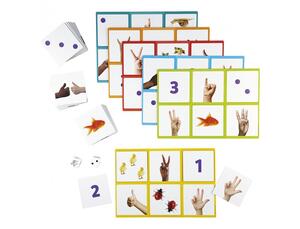 3 jeux de numération tout simples pour découvrir les nombres jusqu'à 3 avec les petits. Les trois règles de jeu permettent de progresser pas à pas. Contenu : 6 planches de jeu, 36 cartes, 2 dés (de 1 à 3, constellations et doigts de la main) et 1 livret pédagogique