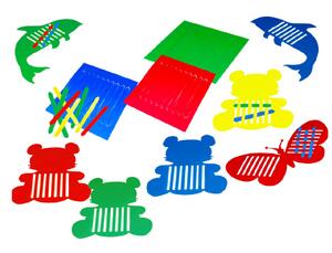Développe la coordination, la maitrise du geste et la motricité fine. En plastique souple et résistant, lavable à l'eau savonneuse et réutilisable. Contenu : 12 planches à tisser, 12 animaux prédécoupés à tisser et 270 bandelettes à tisser multicolores. Pour 24 enfants. Livré dans une valisette de rangement.
