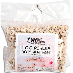Perles en bois alphabet en bois, coins arrondis, lettre imprimées 1 cm de côté.