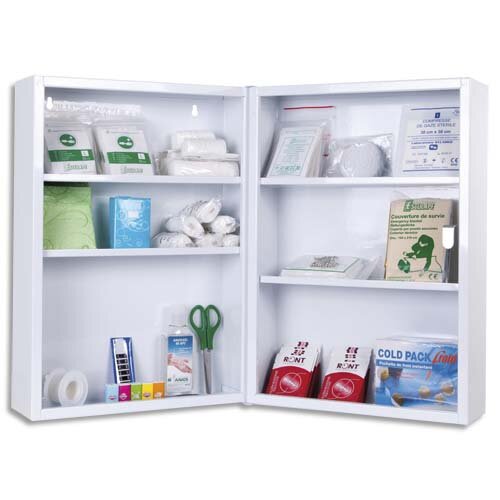 En métal laqué blanc, fermeture à clé avec 2 clés fournies.