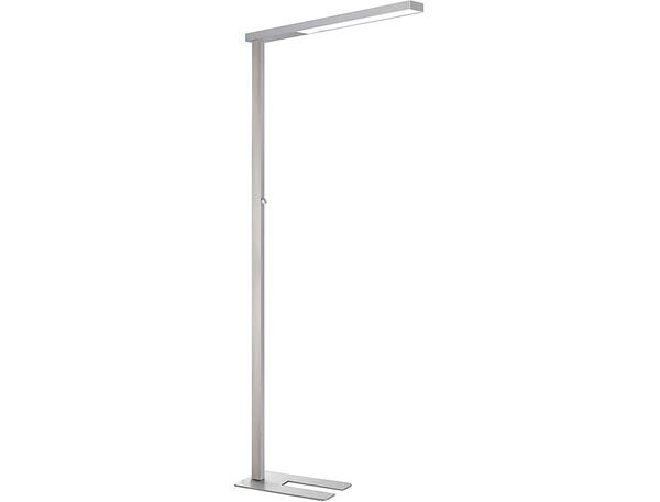 Design moderne conçu avec de l'aluminium recyclable. Lignes aériennes et épurées. Ce lampadaire LED émet une lumière non-scintillante et à rayonnement nul. Réduit la fatigue oculaire. Faible consommation (56W) pour un éclairement de 4250 lumens et une durée de vie de 50 000h sans entretien. Durée de vie des Leds : 40000h. Classe énergétique A+. Coloris gris. Poids : 12,7 kg. Dimensions : 1180 x 420 x 160 mm.