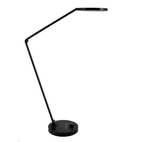 UNILUX OMEGA lampe de bureau noire. Système Eye'Caring : équipée de LED de dernière génération, OMEGA diffuse une lumière douce et homogène, sans scintillement ni éblouissement. Elle préserve lasanté visuelle en supprimant les rayonnements nocifs et en réduisant la fatigue oculaire. Eco'conçue : ses matériaux recyclables en font un produit durable et respectueux de l'environnement. Matériaux : socle et tête en plastique ABS / bras et articulations en aluminium recyclable. La lampe OMEGA offre un éclairage sur mesure grâce à sa triple articulation et sa variation d'intensité. Son design moderne et épuré, combiné à des LED de derniè regénération, diffuse une lumière douce et sans scintillement, idéale pour limiter lafatigue visuelle et préserver le confort de vos yeux