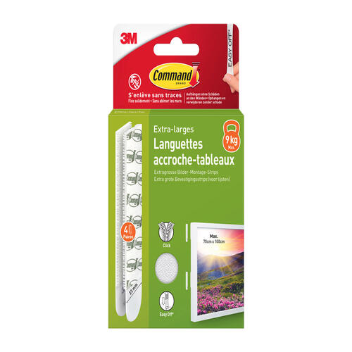 Les langettes adhésives Command Accroche-Tableau taille XL en coloris blanc offrent une solution de fixation fiable et propre pour vos cadres, tableaux et objets décoratifs. Faciles à appliquer sans outil, ces adhésifs assurent une tenue ferme tout en se retirant sans laisser de traces ni abîmer vos murs. Conçues pour supporter des charges importantes, elles sont idéales pour une décoration murale soignée et sans impact.
