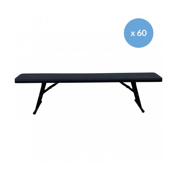 Lot de 60 Bancs pliants en HDPE polyéthylène moulé et soufflé en une seule pièce.