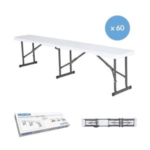 Lot de 60 Bancs pliants en HDPE : 40% plus léger que le bois.