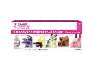 Senteurs lavande, vanille, jasmin, cannelle et rose. 5 flacons 27 ml parfums assortis 1 pipette offerte