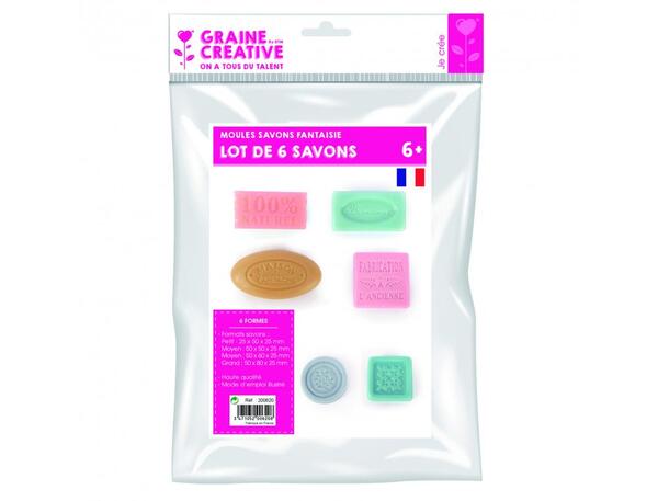 Découvrez le LOT MINI-MOULES POUR SAVONS GRAINE CREATIVE 6 FORMES CLASSIQUES ASSORTIS, l'ensemble parfait pour les amateurs de savonnerie artisanale. Ces moules en silicone vous permettront de réaliser des savons aux formes classiques avec une grande facilité et une excellente précision.