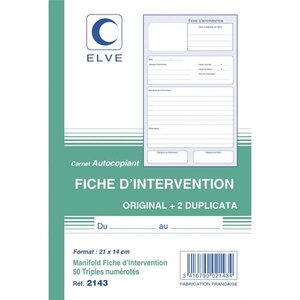 – Fiche d’intervention 21 x 14 cm. Nombre de feuilles : 50/3 Tripli.