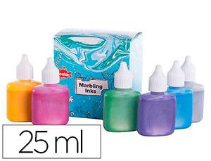 Marbling base huile. Gamme de coffrets de marbling pour obtenir des effets magiques de coloration à la cuve ! Très simples à manipuler, les coffrets marbling s'utilisent directement sans préparation ni épaississant dans un bac à eau ordinaire. L'émulsion huile et encre ne nécessite pas l'ajout d'épaississant ou de pastilles. Couleurs miscibles entre elles pour obtenir des résultats plus variés. La marbrure réalisée est résistante à l'eau et à la lumière. Produit économique : une goutte de colorant permet d'obtenir des bains réutilisables de nombreuses fois. Flacons de 25 ml. Lot de 6 unités. Coloris assortis métalliques.