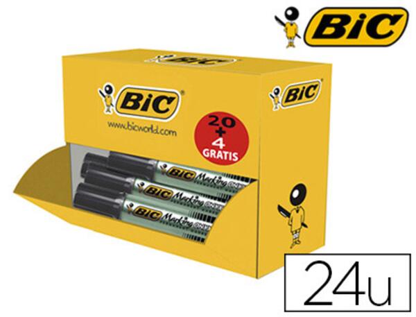 MARQUEUR BIC PERMANENT ONYX MARKER 1481 POINTE BISEAUTÉE 4/7MM TOUS SUPPORTS NOIR PACK 20 UNITÉS + 4 GRATUITS
