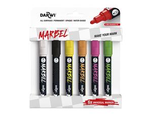 Découvrez ce set de 6 marqueurs Darwi Marbel universels équipés d'une pointe ronde medium de 4 mm. Ces marqueurs à peinture acrylique à base d'eau sont conçus pour répondre aux besoins des créateurs de tous âges, qu'ils soient débutants ou experts. Grâce à leur encre opaque, permanente et résistante à la lumière, ils offrent une finition matte idéale pour de nombreux supports.