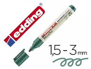 1- Marqueur permanent 2- Pour marquer et écrire sur presque tous les matériaux, par ex. sur le papier, le carton, le métal, le plastique et le verre. 3Le total des composants plastique du marqueur est fabriqué avec au moins 90 % de matériau recyclé (83 % post-consommation). Produit certifié ClimatePartner. Des informations sur la compensation des émissions de gaz à effet de serre de l'EcoLine sont disponibles à l'adresse suivante : www.ClimatePartner.com/13742-1910-1001. La pointe ogive a une largeur de trait de 1,5 à 3 mm. Résistance à l'eau et à l'abrasion sur presque toutes les surfaces. Le produit est rechargeable avec les encres de recharge edding MTK 25, T 25, T 100 et T 1000. Des pointes de rechange appropriées (edding 21 Pointes de rechange) sont disponibles. L'encre a une faible odeur et ne contient pas de toluène/xylène. 4- Vert 5- 140x95x40mm 6- 20,2 7- 10