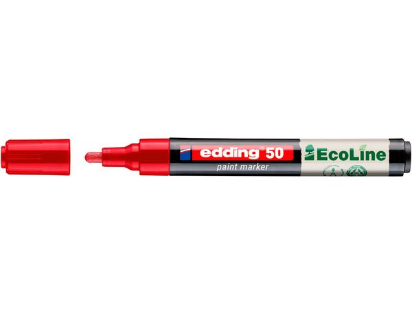 Marqueur peinture de qualité professionnelle pour le marquage et l'étiquetage très opaque et permanent sur des matériaux foncés, transparents et lisses, tels que le verre, le métal et le plastique. Peinture écologique à base d'eau à faible teneur en COV. Au moins 85 % du plastique total utilisé dans le marqueur est fabriqué à partir de matériaux recyclés après consommation. La pointe ogive a une largeur de trait de 2 à 3 mm. L'encre du marqueur peinture résiste à l'eau et à la lumière et sèche rapidement. Produit rechargeable avec la recharge d'encre LT25 edding. Pointes de rechange adaptées (pointes de rechange edding 50) disponibles. Encre inodore sans toluène/xylène ajoutés. Produit fabriqué en Allemagne.