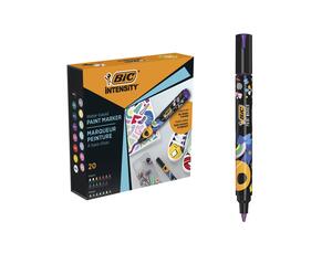 Découvrez la boîte de 20 marqueurs peinture BIC Intensity à pointe ogive moyenne, disponibles en coloris assortis. Ces marqueurs combinent une encre à base d'eau non toxique, couvrante et permanente, avec une conception respectueuse de l'environnement grâce à une composition à 98% de matériaux recyclés. Ils offrent une excellente adhérence et une grande résistance sur la plupart des surfaces poreuses, même foncées, pour des tracés précis et durables, que ce soit en intérieur ou en extérieur.