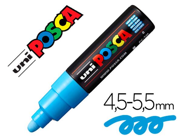 MARQUEUR. Depuis 30 ans, le marqueur POSCA accompagne la création et impulse une dynamique artistique sur tous les supports. Peinture à base de pigments naturels inaltérables. Couleurs couvrantes, aquarellables, mélangeables, patinables, superposables. Permanent sur surfaces poreuses. Semi-permanent (effaçable) sur surfaces lisses non poreuses. Ne traverse pas le papier. Plus d'information sur www.posca.com ! Bleu clair.